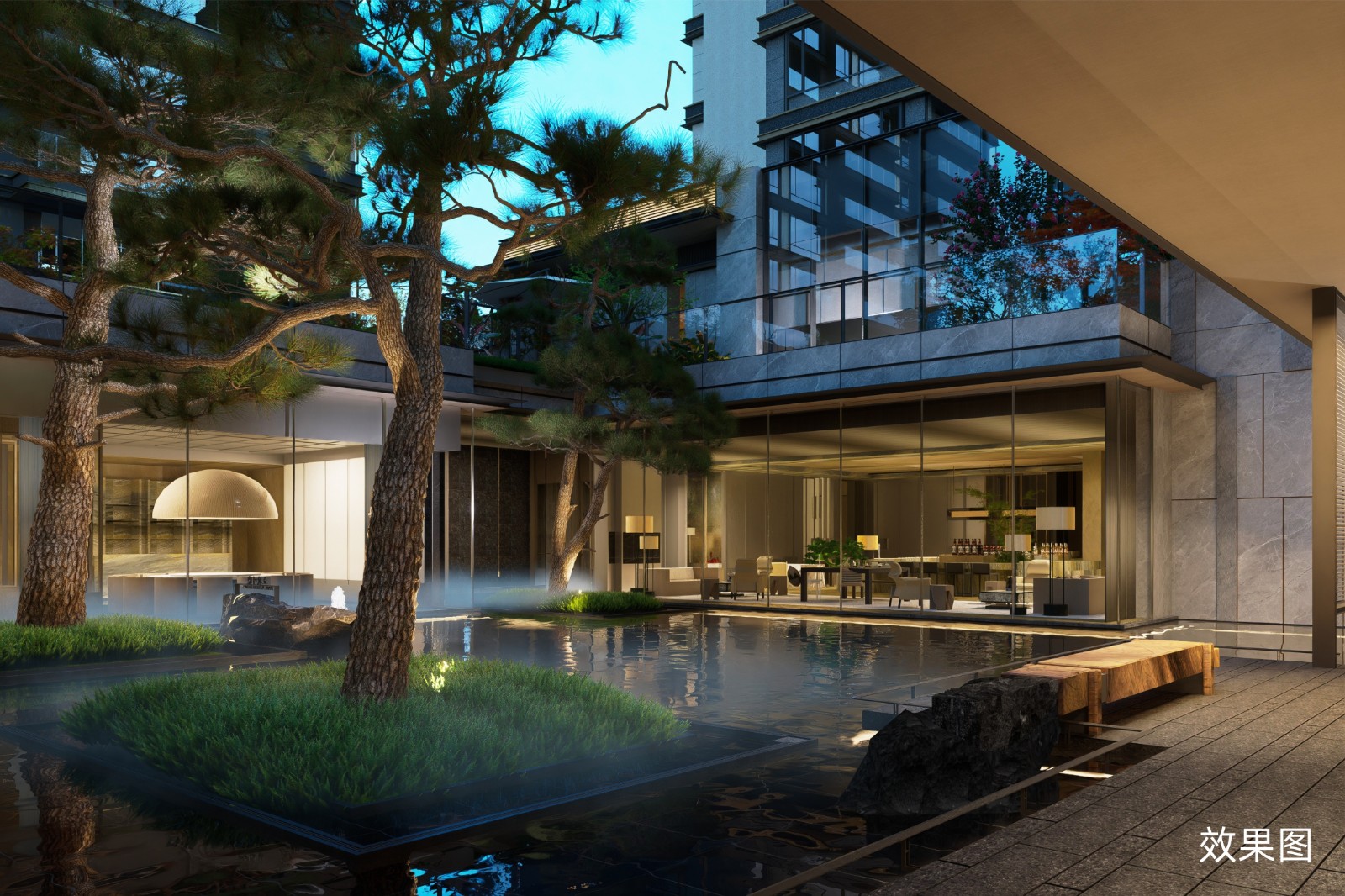 全水系下沉庭院,松树、水景、置石、绿岛......都被赋予隐奢山水的美感,身着中国风雅时装的超模们行走其间,空间内艺术雕塑、蜀画、漆画等艺术品有序陈列,相得益彰。造景诗情画意、选材考究精细,水的灵动、树的悦目、空间的巧思、氛围的布置…这些细节,也让越秀·望悦的隐奢直接与其他房子有了本质的区别。